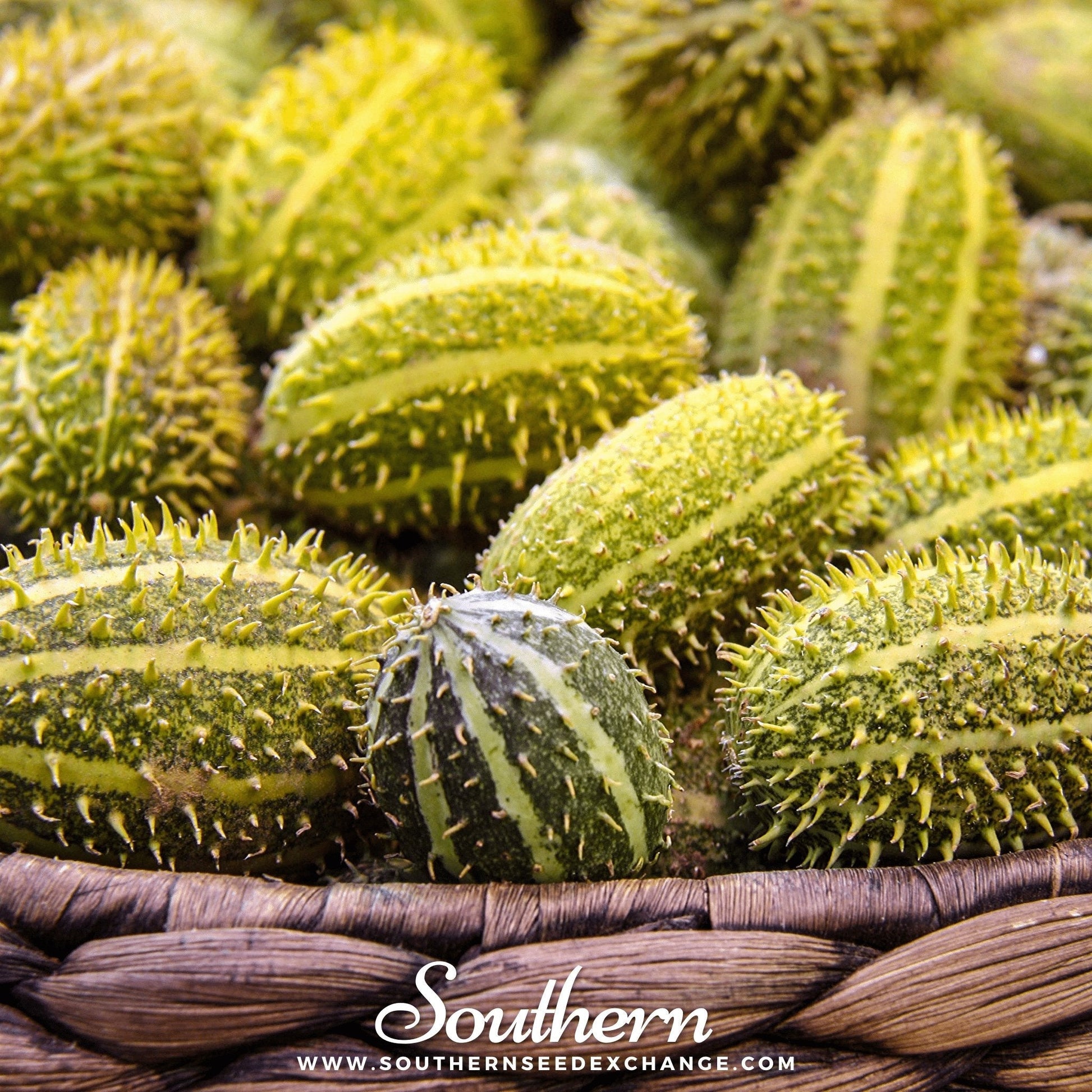 West Indian Gherkin grow extremely vigorous vines that are excellent for all gardens, space permitting. These plants grow so prolifically that fruits can be harvested throughout the entire summer and won't wilt in the heat, and vines don’t leave room for weeds. Fruits are 3-5” long and have a rounded shape, covered in small spikes.
